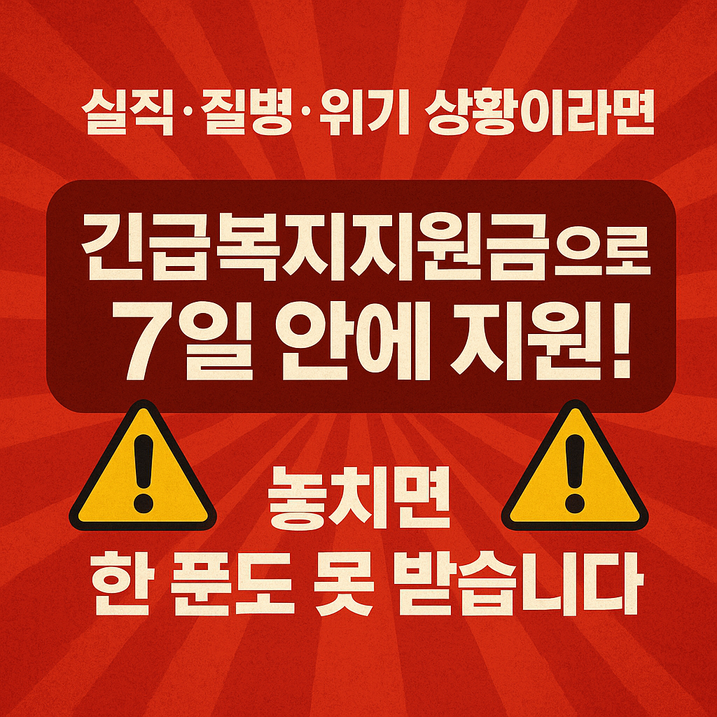 🆘 실직·질병·위기 상황이라면, ‘긴급복지지원금’으로 7일 안에 지원받을 수 있어요!